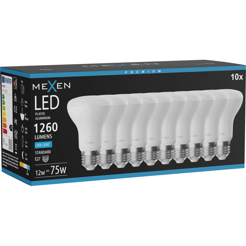 Mexen Nova 10x LED žárovka E27, R63, 12W, studená - 6500K, 1260 lm - L104-E27-1265-01x10