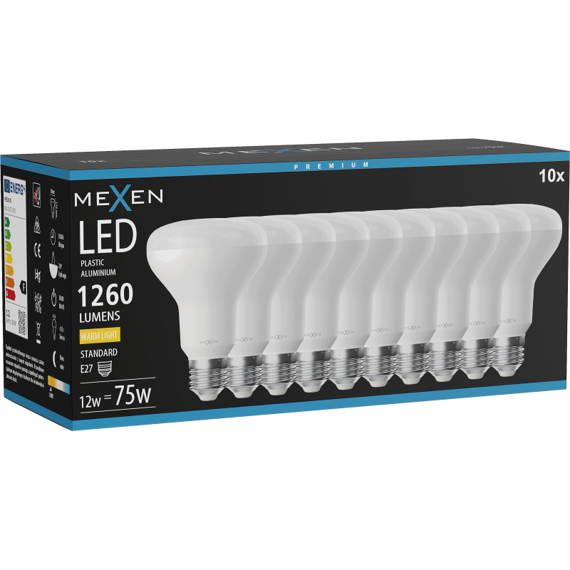 Mexen Nova 10x LED žárovka E27, R80, 12W, teplá - 3000K, 1260 lm - L105-E27-1230-01x10