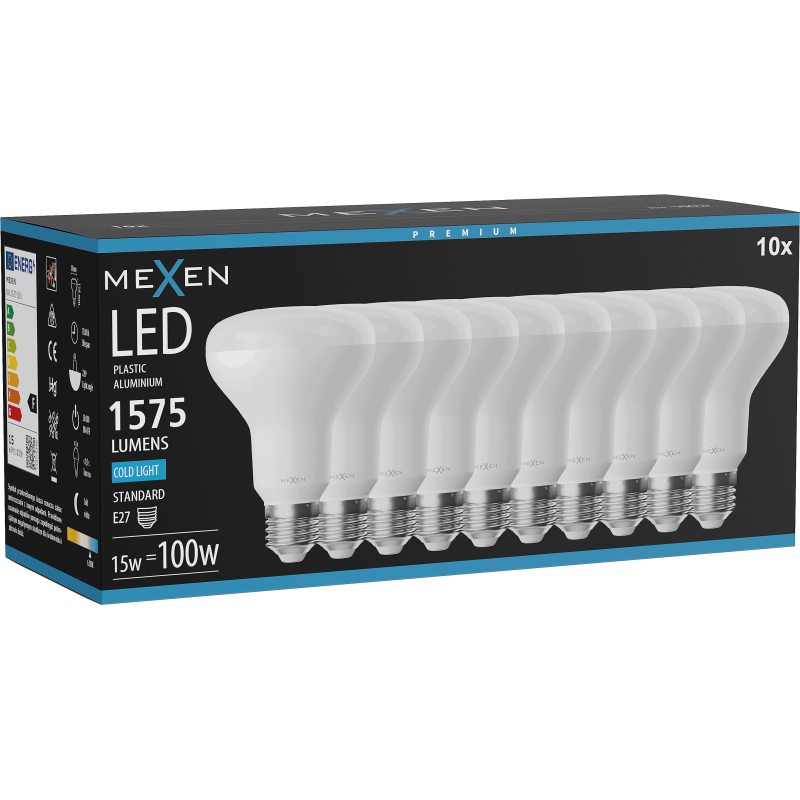Mexen Nova 10x LED žárovka E27, R80, 15W, studená - 6500K, 1575 lm - L105-E27-1565-01x10