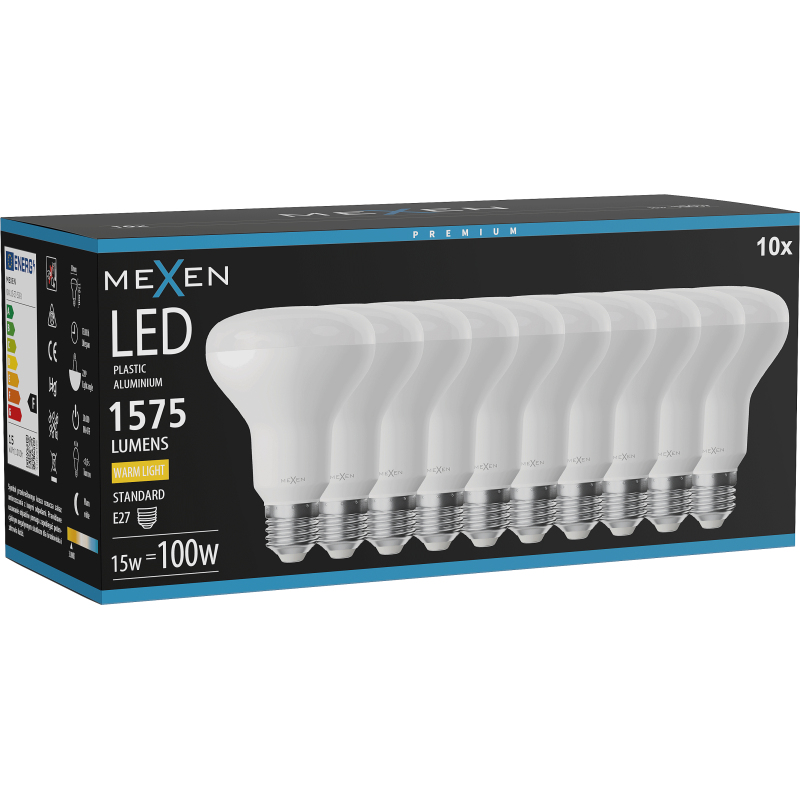 Mexen Nova 10x LED žárovka E27, R80, 15W, teplá - 3000K, 1575 lm - L105-E27-1530-01x10