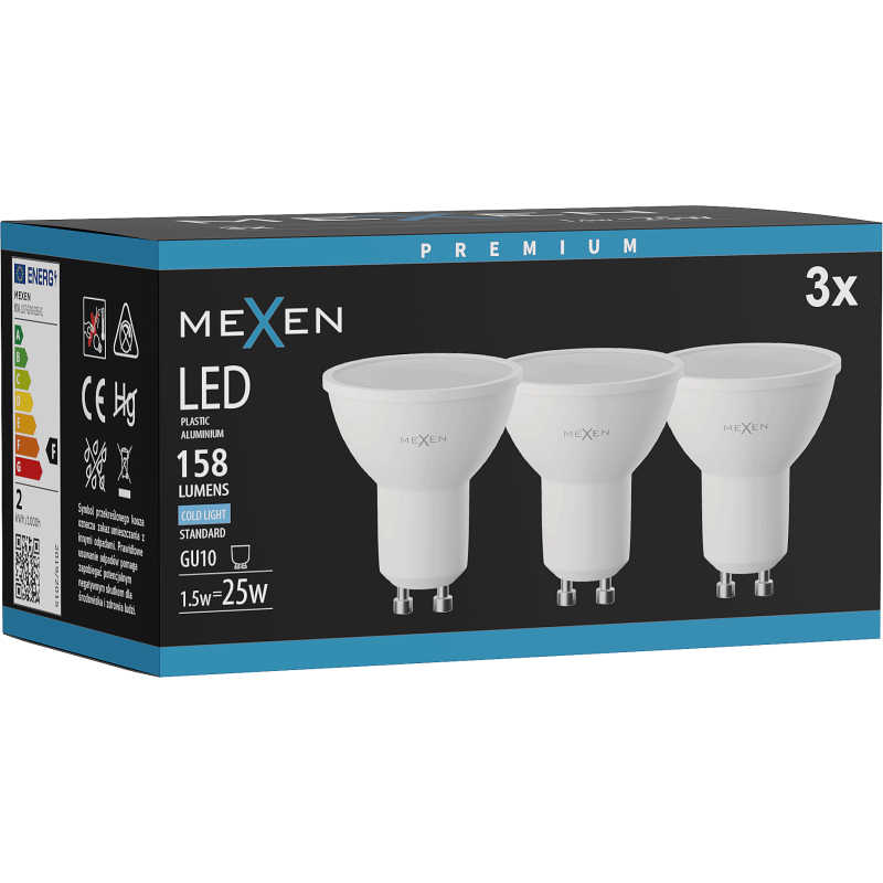 Mexen Nova 3x żarówka LED GU10, 1,5W, Zimna - 6500K, 158 lm - L107-GU10-0165-01x03