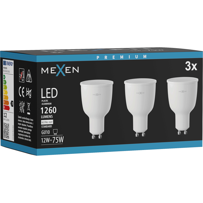 Mexen Nova 3x żarówka LED GU10, 12W, Neutralna - 4000K, 1260 lm - L108-GU10-1240-01x03