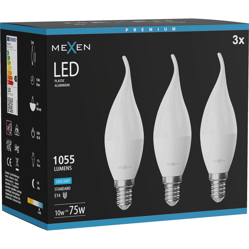 Mexen Nova 3x LED žárovka E14, C37, 10W, studená - 6500K, 1055 lm - L106-E14-1065-01x03