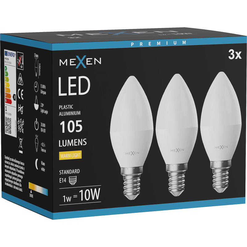 Mexen Nova 3x LED žárovka E14, C37, 1W, neutrální - 4000K, 105 lm - L102-E14-0140-01x03