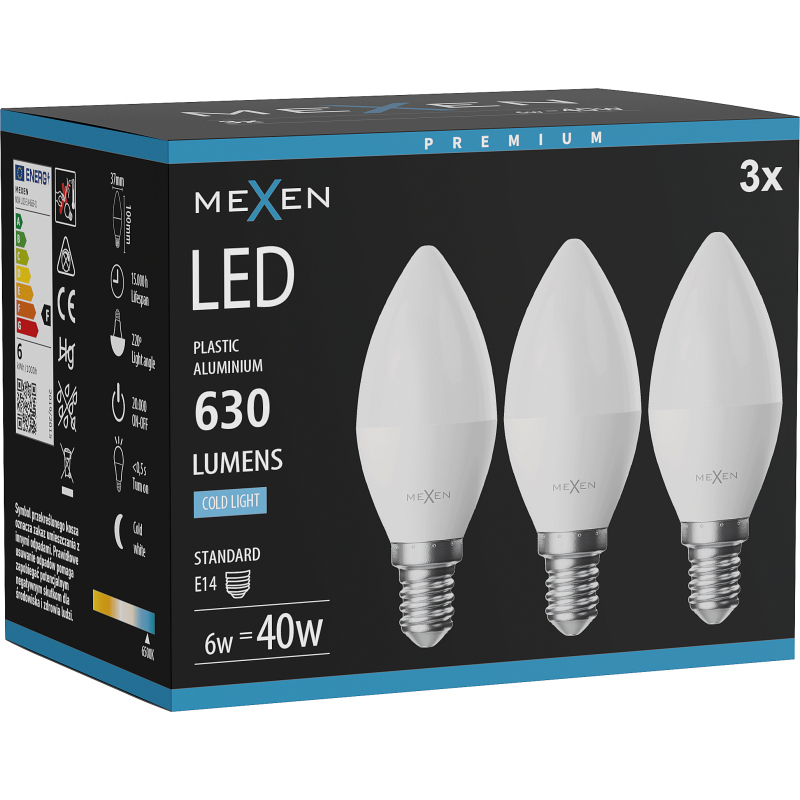 Mexen Nova 3x LED žárovka E14, C37, 6W, studená - 6500K, 630 lm - L102-E14-0665-01x03