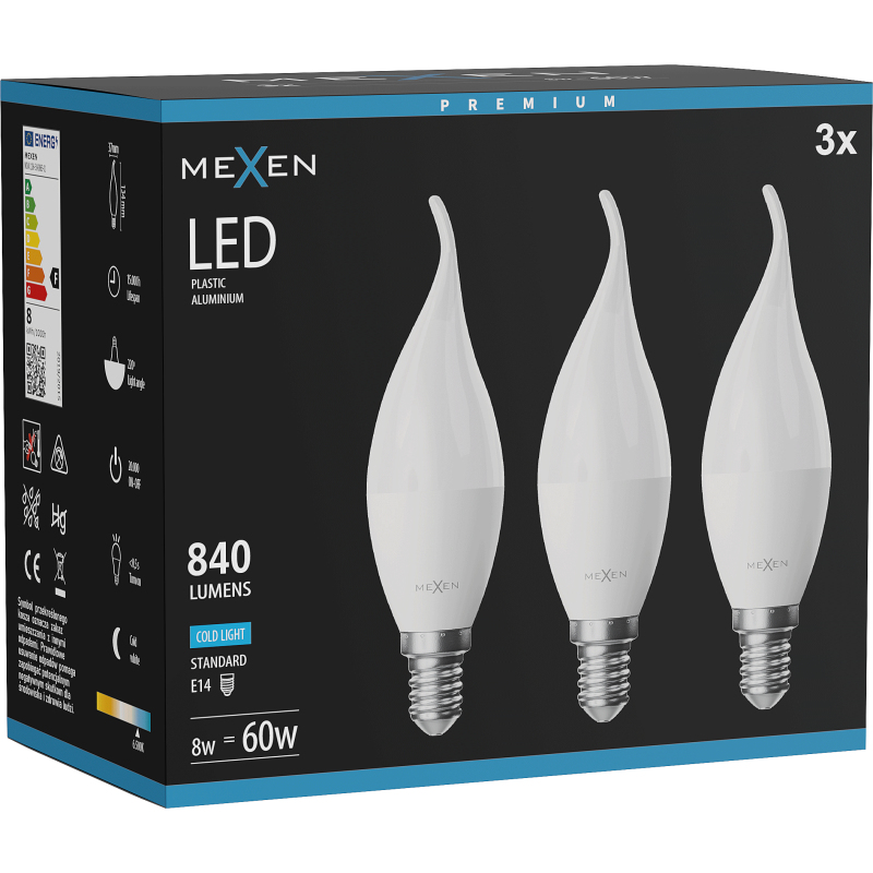 Mexen Nova 3x LED žárovka E14, C37, 8W, studená - 6500K, 840 lm - L106-E14-0865-01x03