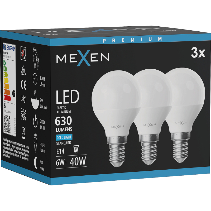 Mexen Nova 3x LED žárovka E14, G45, 6W, studená - 6500K, 630 lm - L101-E14-0665-01x03