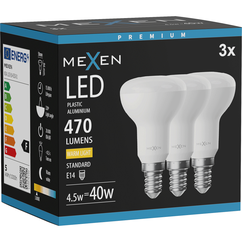 Mexen Nova 3x LED žárovka E14, R50, 4,5W, teplá - 3000K, 470 lm - L103-E14-0530-01x03