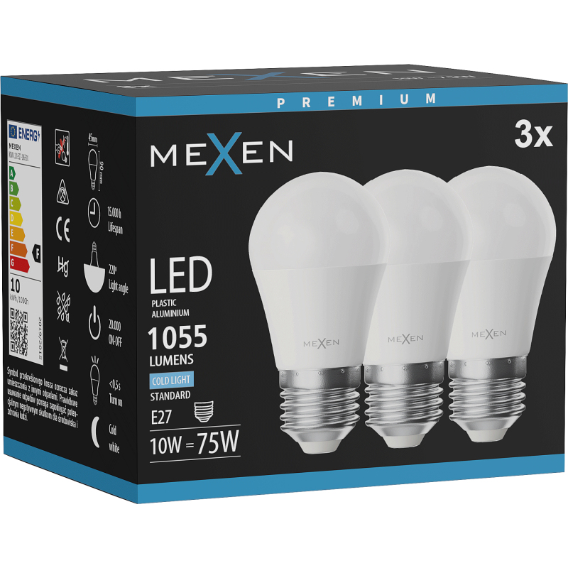 Mexen Nova 3x LED žárovka E27, G45, 10W, studená - 6500K, 1055 lm - L101-E27-1065-01x03