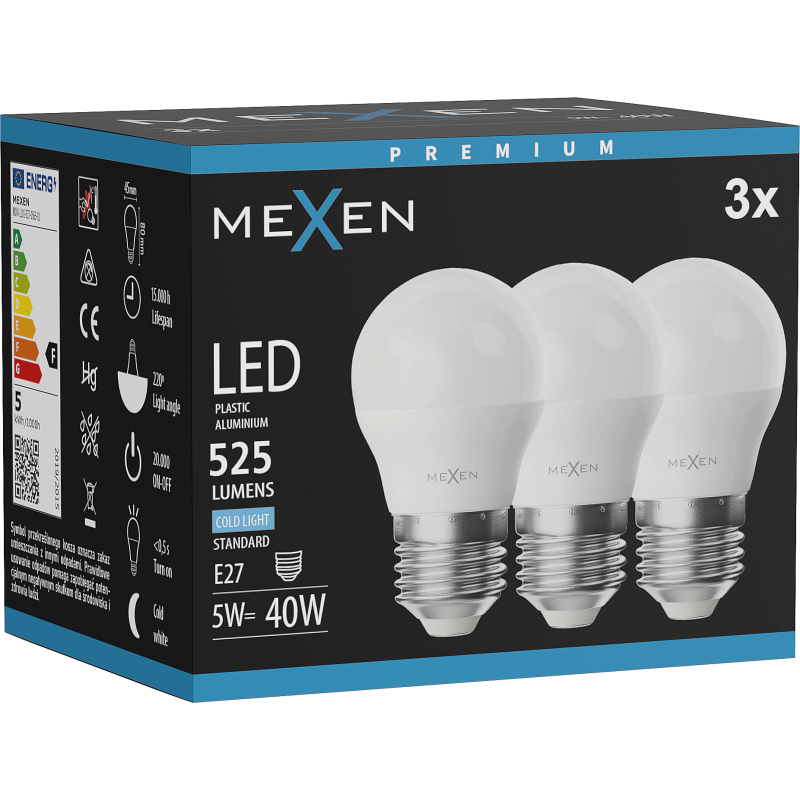 Mexen Nova 3x LED žárovka E27, G45, 5W, studená - 6500K, 525 lm - L101-E27-0565-01x03
