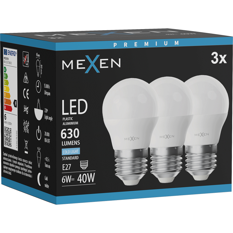 Mexen Nova 3x LED žárovka E27, G45, 6W, studená - 6500K, 630 lm - L101-E27-0665-01x03