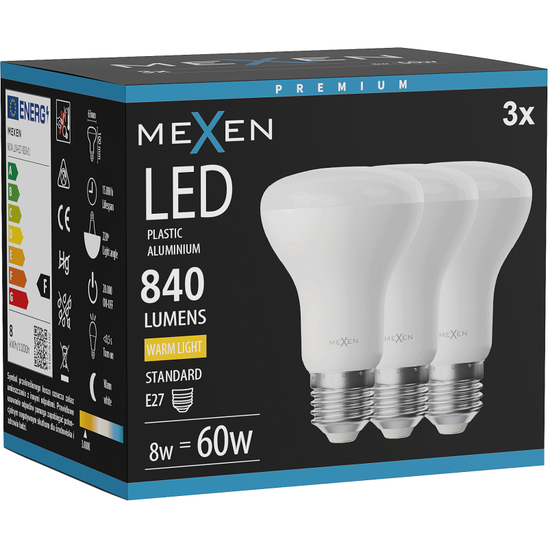 Mexen Nova 3x LED žárovka E27, R63, 8W, teplá - 3000K, 840 lm - L104-E27-0830-01x03