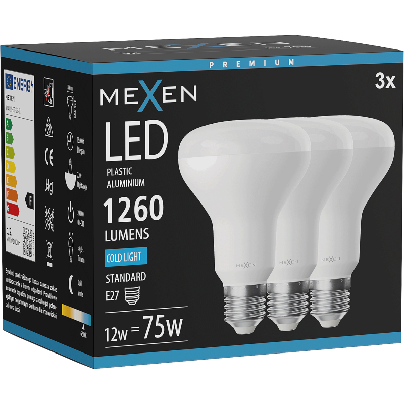 Mexen Nova 3x LED žárovka E27, R80, 12W, studená - 6500K, 1260 lm - L105-E27-1265-01x03