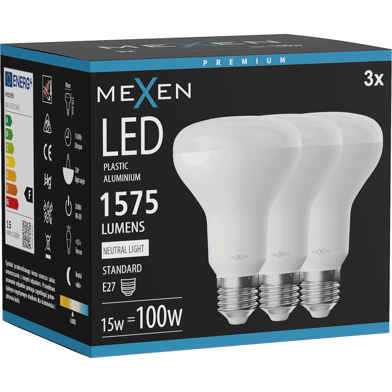 Mexen Nova 3x LED žárovka E27, R80, 15W, neutrální - 4000K, 1575 lm - L105-E27-1540-01x03