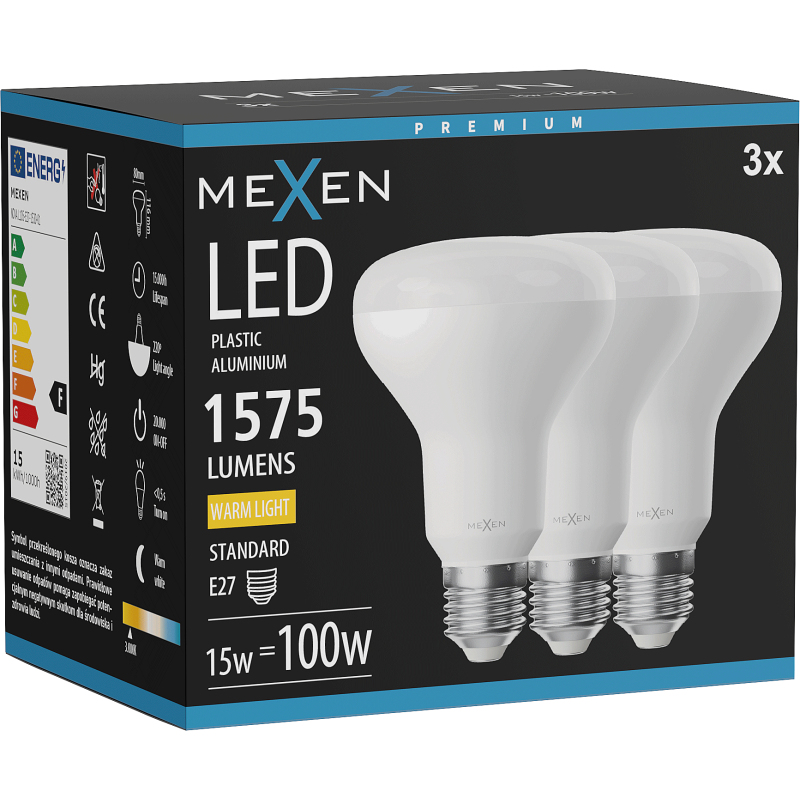 Mexen Nova 3x LED žárovka E27, R80, 15W, teplá - 3000K, 1575 lm - L105-E27-1530-01x03