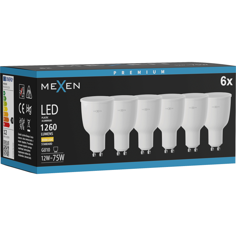 Mexen Nova 6x żarówka LED GU10, 12W, Ciepła - 3000K, 1260 lm - L108-GU10-1230-01x06