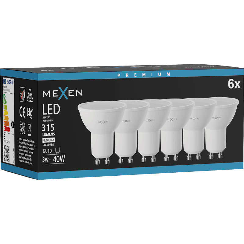 Mexen Nova 6x żarówka LED GU10, 3W, Neutralna - 4000K, 315 lm - L107-GU10-0340-01x06