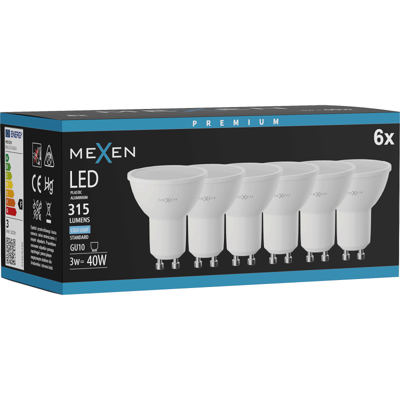 Mexen Nova 6x żarówka LED GU10, 3W, Zimna - 6500K, 315 lm - L107-GU10-0365-01x06