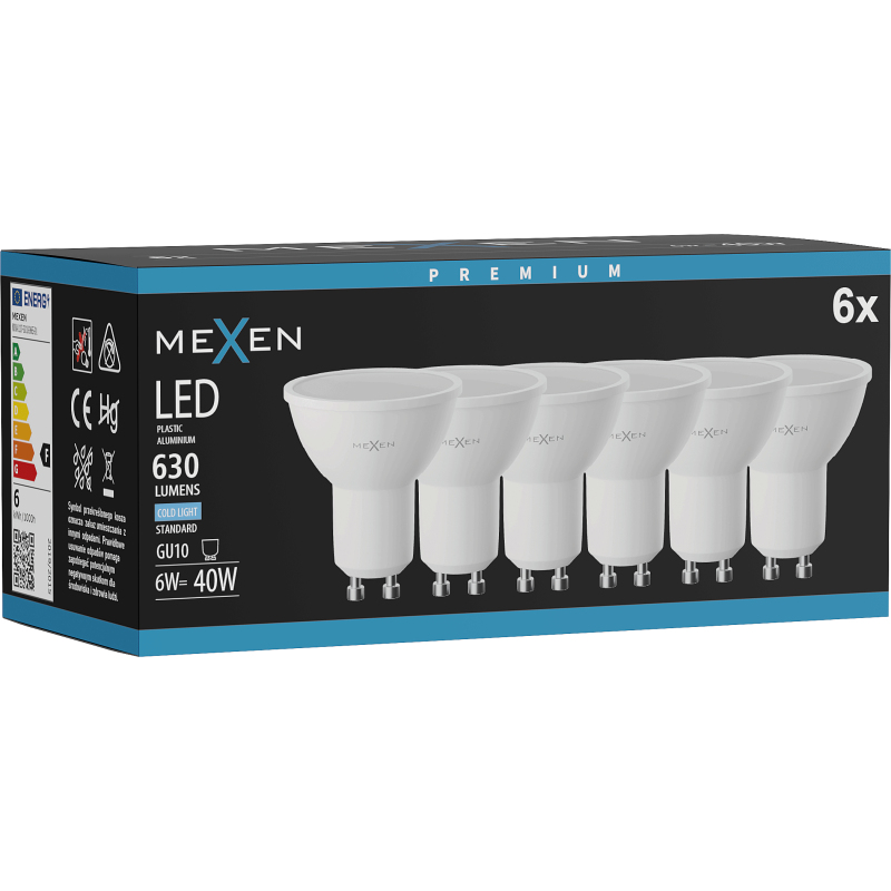 Mexen Nova 6x żarówka LED GU10, 6W, Zimna - 6500K, 630 lm - L107-GU10-0665-01x06