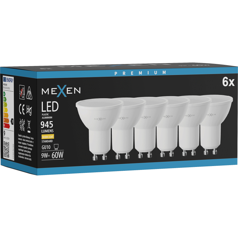 Mexen Nova 6x żarówka LED GU10, 9W, Ciepła - 3000K, 945 lm - L108-GU10-0930-01x06