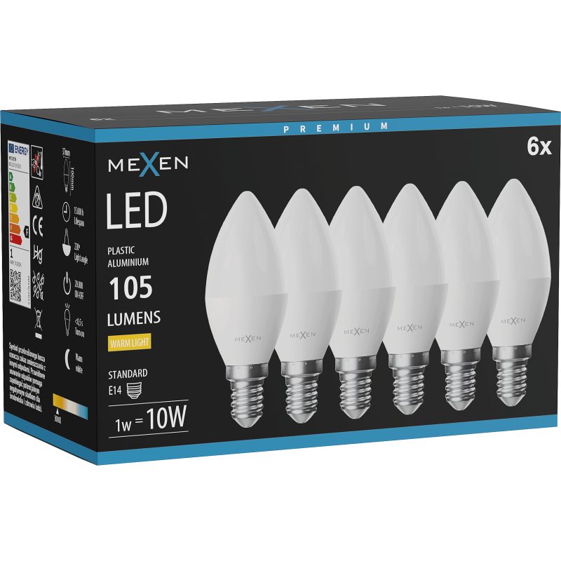 Mexen Nova 6x LED žárovka E14, C37, 1W, teplá - 3000K, 105 lm - L102-E14-0130-01x06