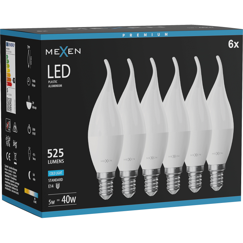 Mexen Nova 6x LED žárovka E14, C37, 5W, studená - 6500K, 525 lm - L106-E14-0565-01x06