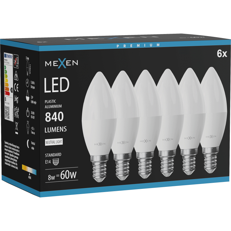 Mexen Nova 6x LED žárovka E14, C37, 8W, neutrální - 4000K, 840 lm - L102-E14-0840-01x06