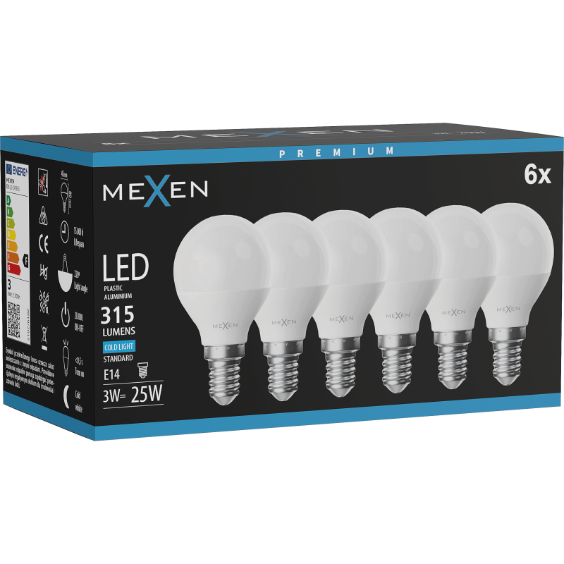 Mexen Nova 6x LED žárovka E14, G45, 3W, studená - 6500K, 315 lm - L101-E14-0365-01x06