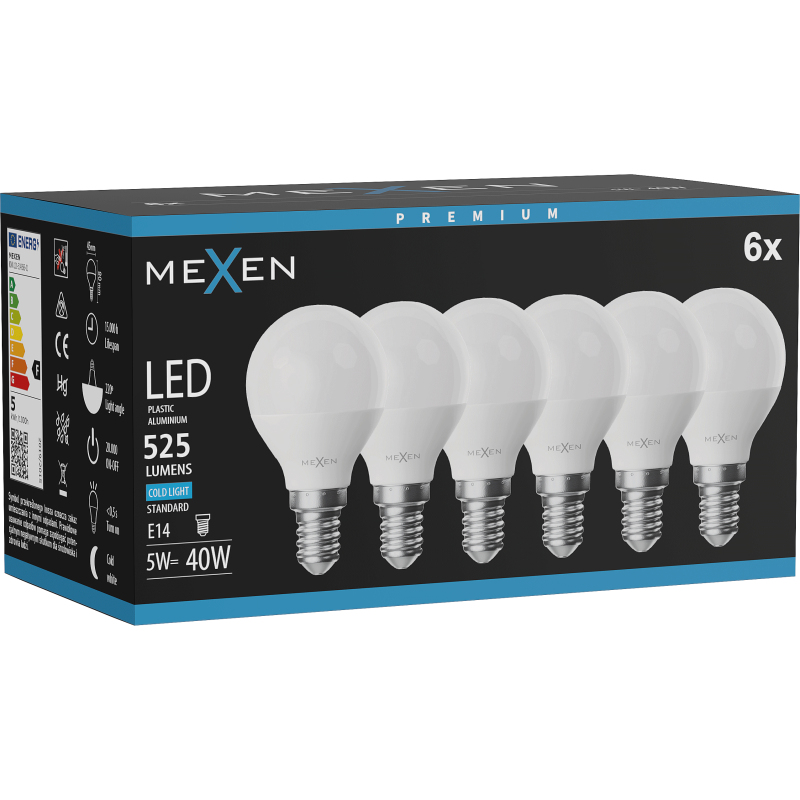 Mexen Nova 6x LED žárovka E14, G45, 5W, studená - 6500K, 525 lm - L101-E14-0565-01x06