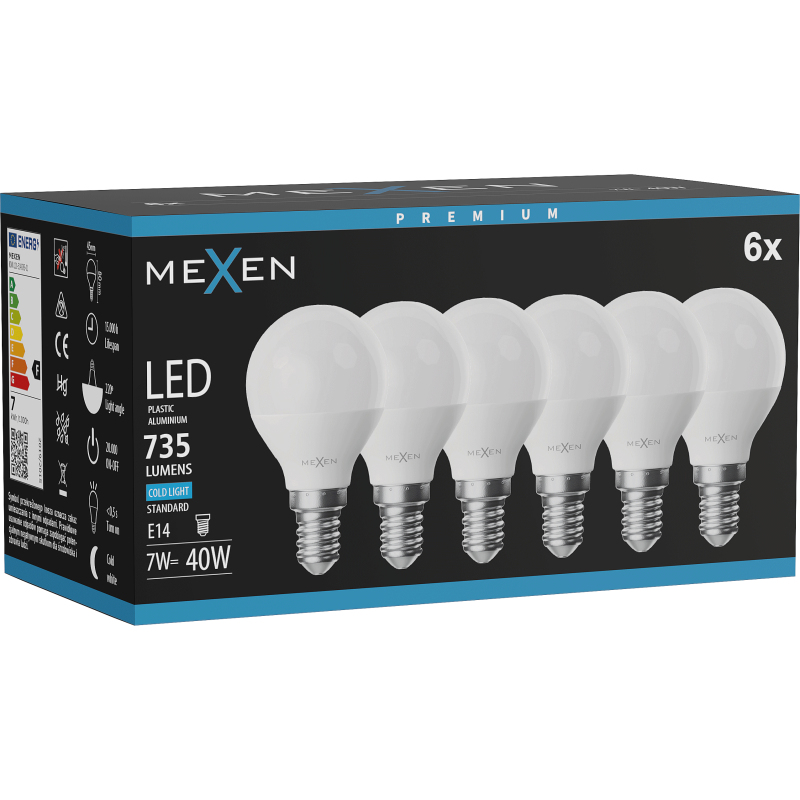 Mexen Nova 6x LED žárovka E14, G45, 7W, studená - 6500K, 735 lm - L101-E14-0765-01x06