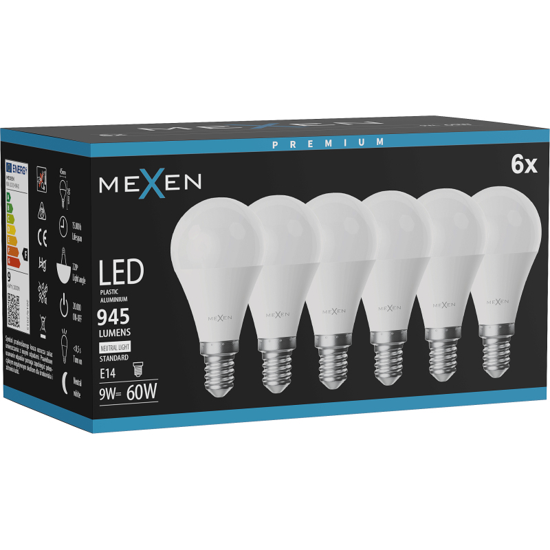 Mexen Nova 6x LED žárovka E14, G45, 9W, Neutral - 4000K, 945 lm - L101-E14-0940-01x06