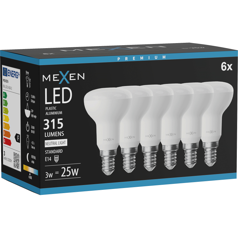 Mexen Nova 6x LED žárovka E14, R50, 3W, Neutral - 4000K, 315 lm - L103-E14-0340-01x06