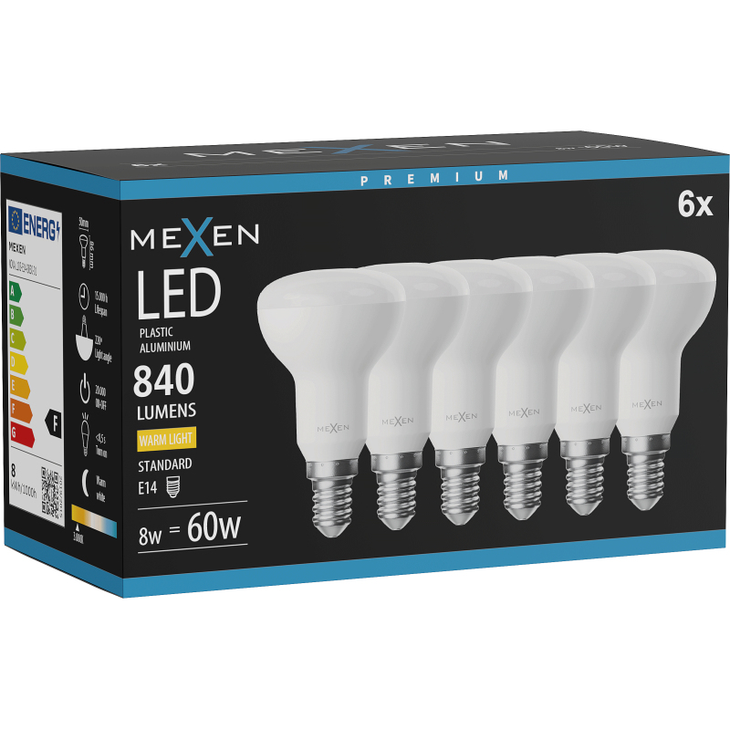Mexen Nova 6x LED žárovka E14, R50, 8W, teplá - 3000K, 840 lm - L103-E14-0830-01x06