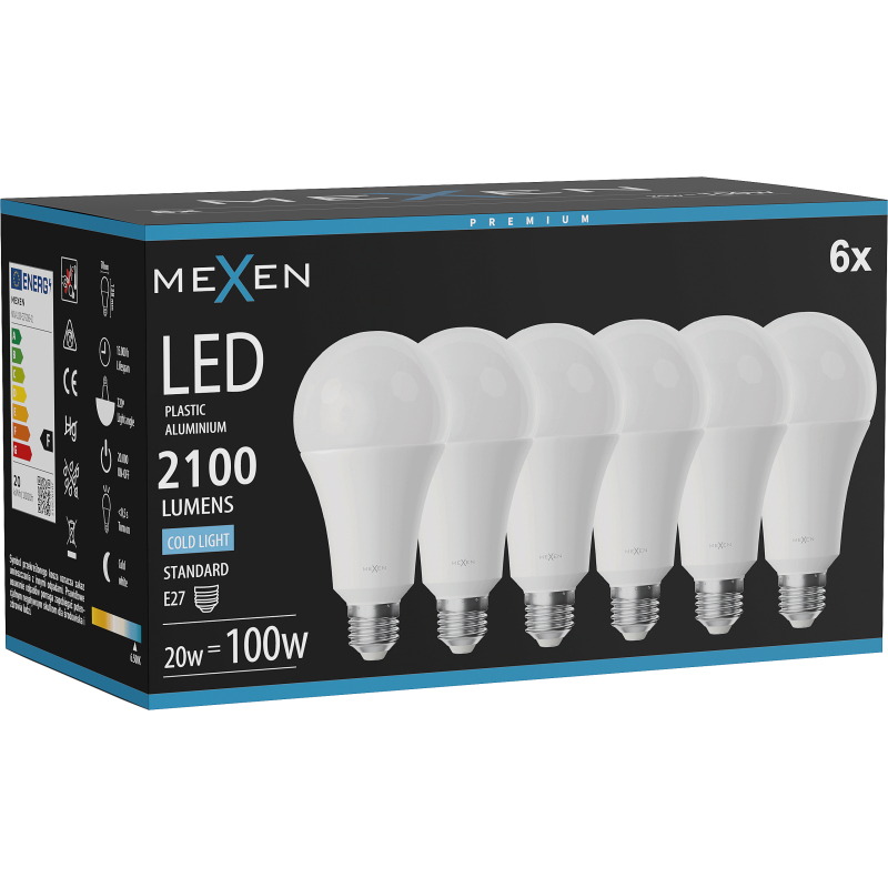 Mexen Nova 6x LED žárovka E27, A70, 20W, studená - 6500K, 2100 lm - L100-E27-2065-01x06