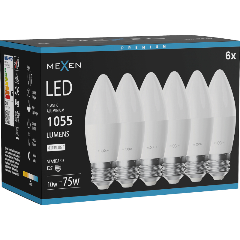 Mexen Nova 6x LED žárovka E27, C37, 10W, neutrální - 4000K, 1055 lm - L102-E27-1040-01x06