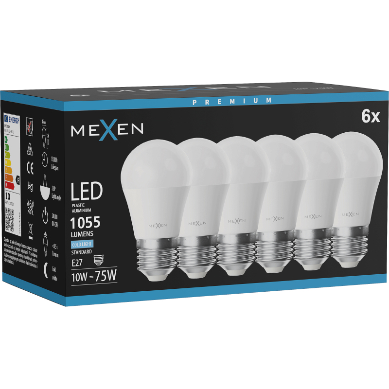 Mexen Nova 6x LED žárovka E27, G45, 10W, studená - 6500K, 1055 lm - L101-E27-1065-01x06