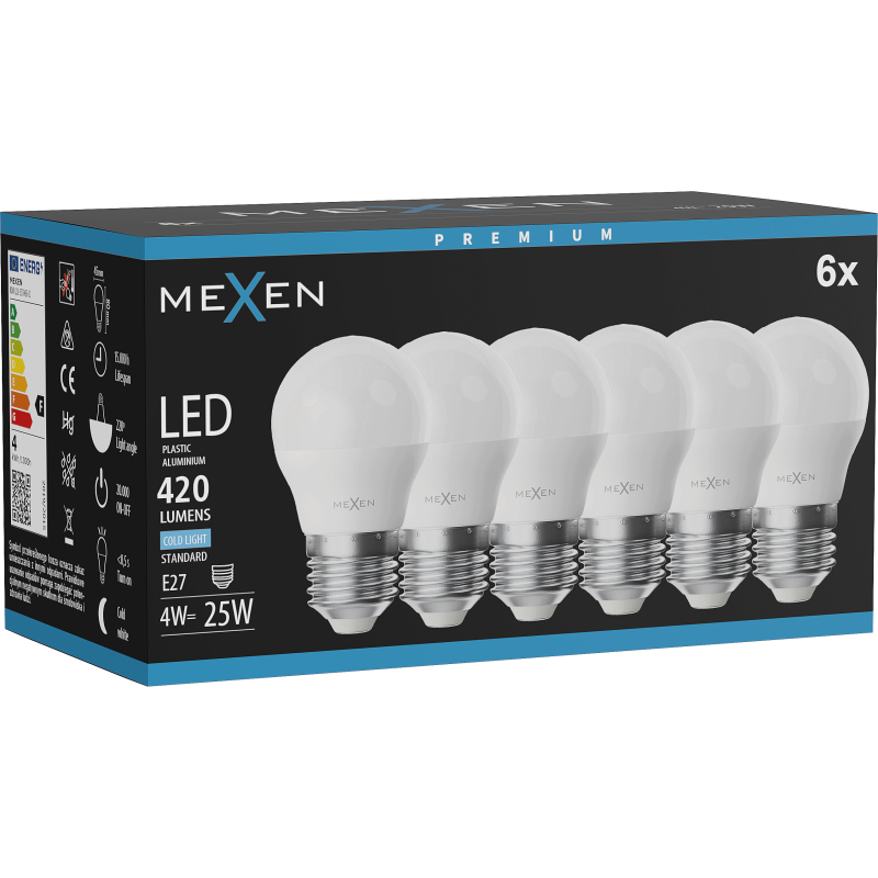 Mexen Nova 6x LED žárovka E27, G45, 4W, studená - 6500K, 420 lm - L101-E27-0465-01x06