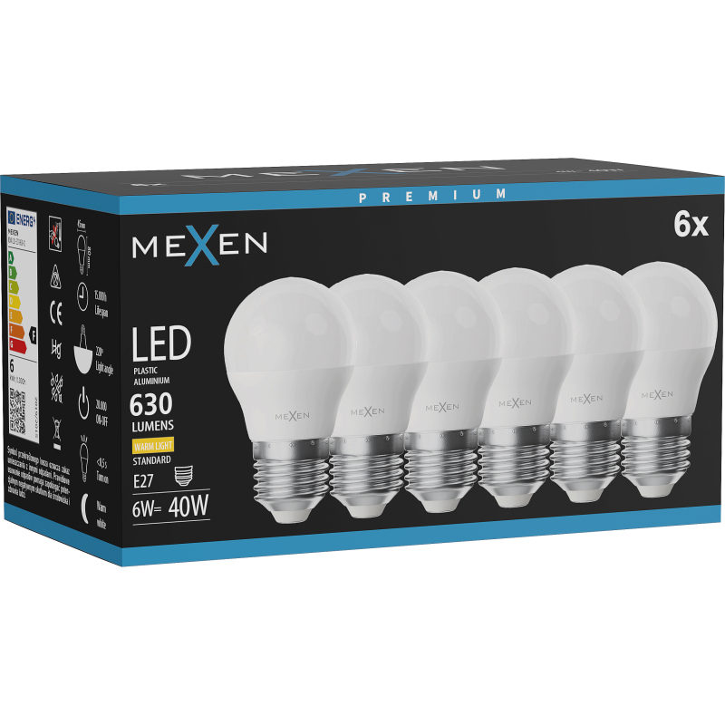 Mexen Nova 6x LED žárovka E27, G45, 6W, teplá - 3000K, 630 lm - L101-E27-0630-01x06