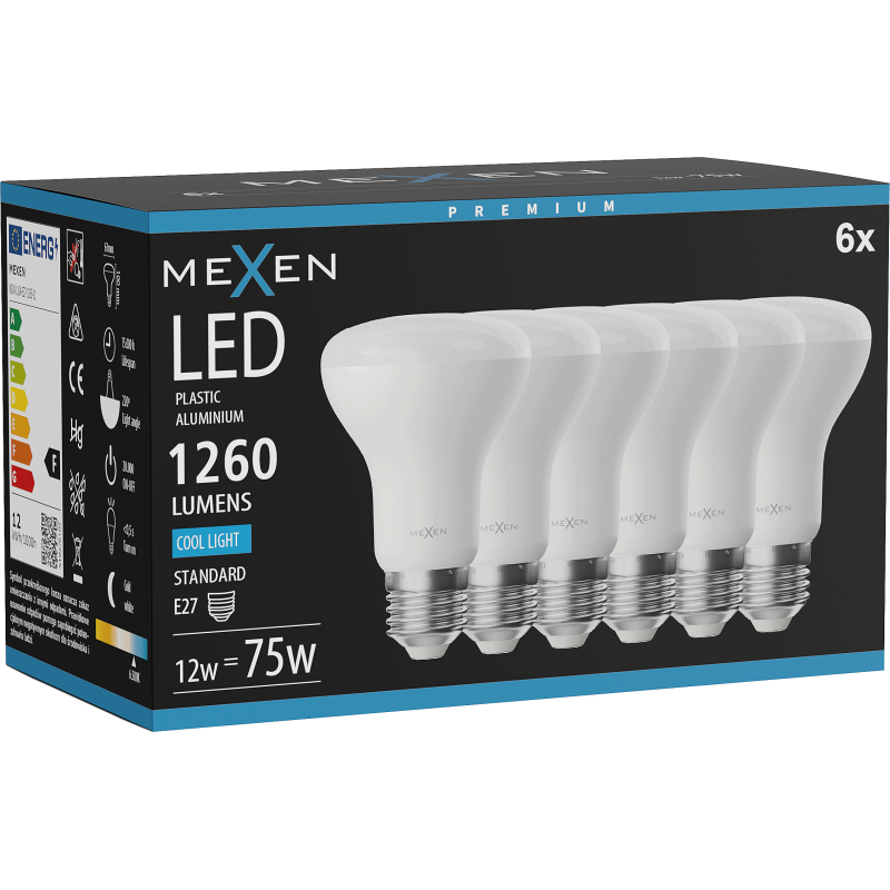 Mexen Nova 6x LED žárovka E27, R63, 12W, studená - 6500K, 1260 lm - L104-E27-1265-01x06