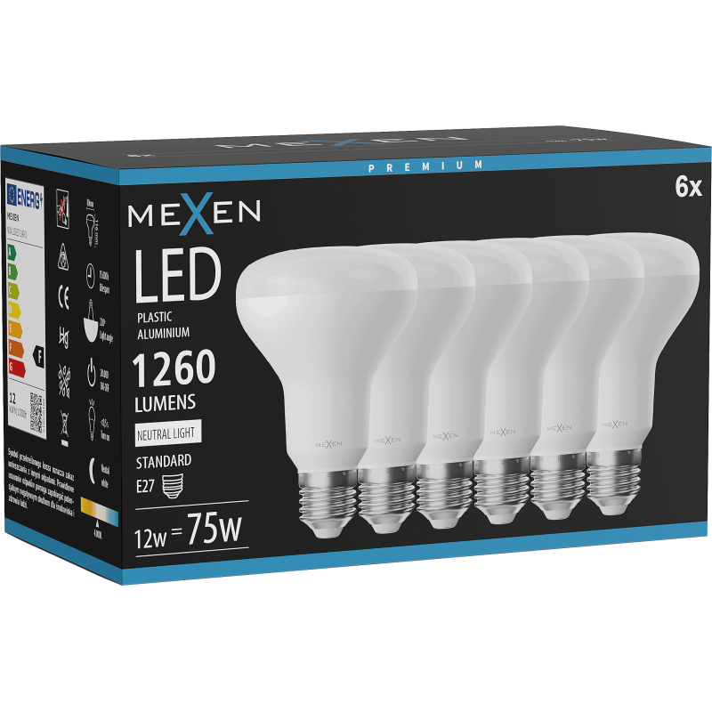 Mexen Nova 6x LED žárovka E27, R80, 12W, neutrální - 4000K, 1260 lm - L105-E27-1240-01x06