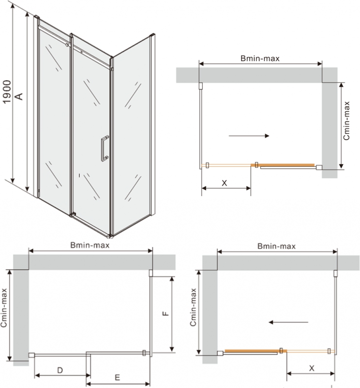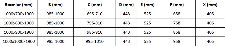 Rozměr: 100x70 cm (dveře 100 cm, stěna 70 cm)