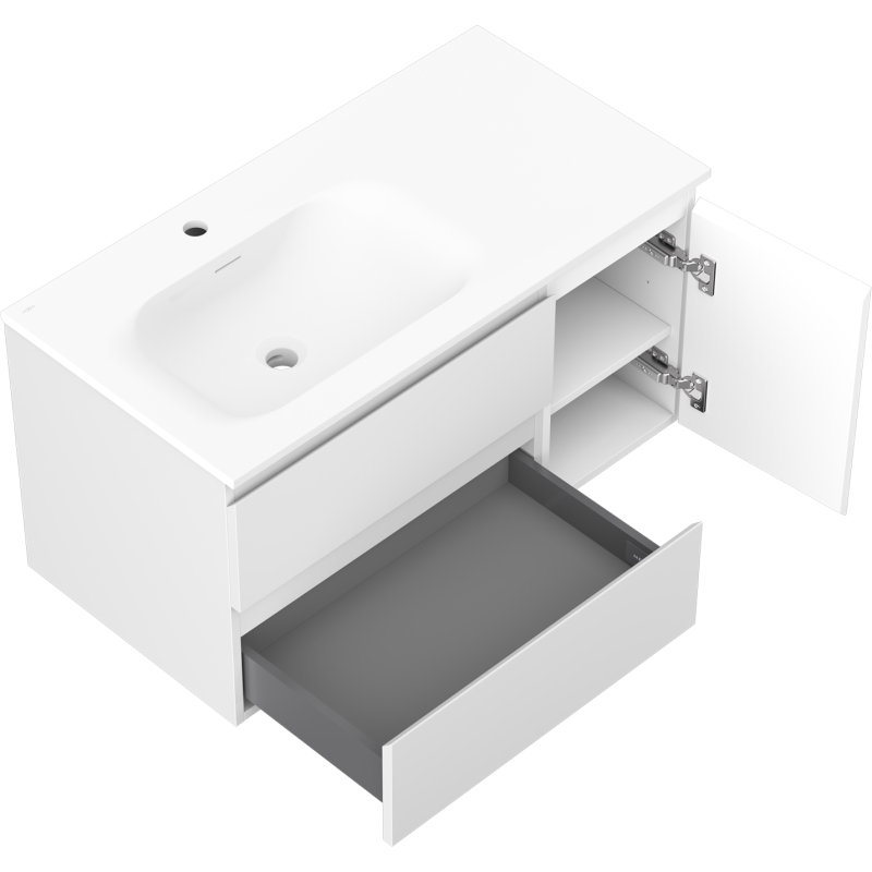 Mexen Orio koupelnová skříňka 90 cm s umyvadlem Vela levým, 2S, 1D, matná bílá - 91A13-09047-3-BBFFFF01-W23L01