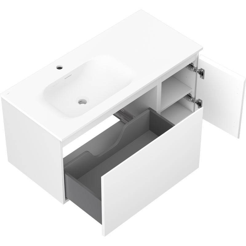 Mexen Orio koupelnová skříňka 90 cm s umyvadlem Vela vlevo, 1S, 1D, matná bílá - 91A13-09047-3-BBFF01-W23L01