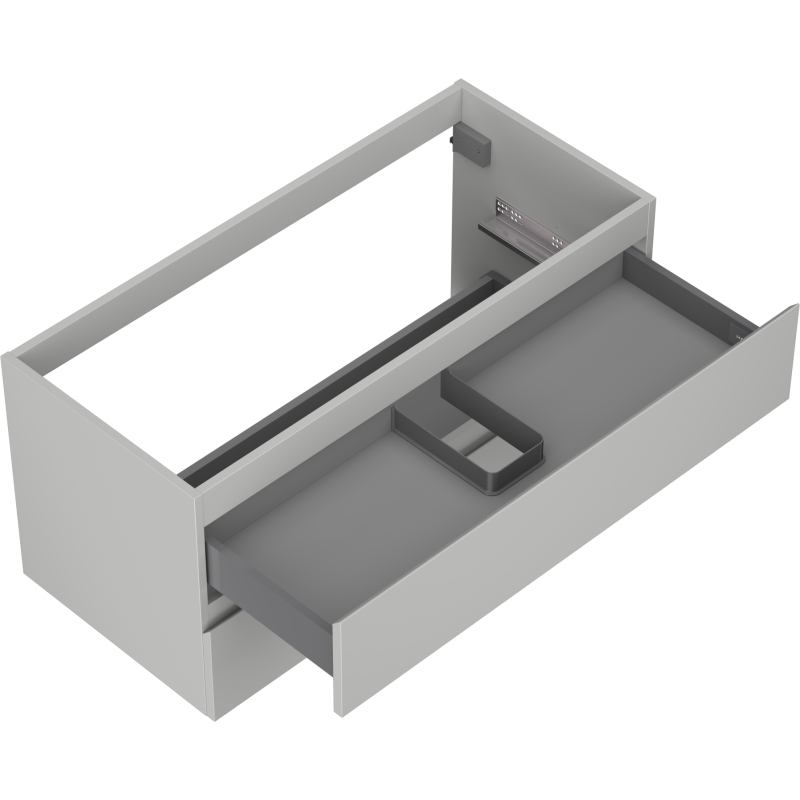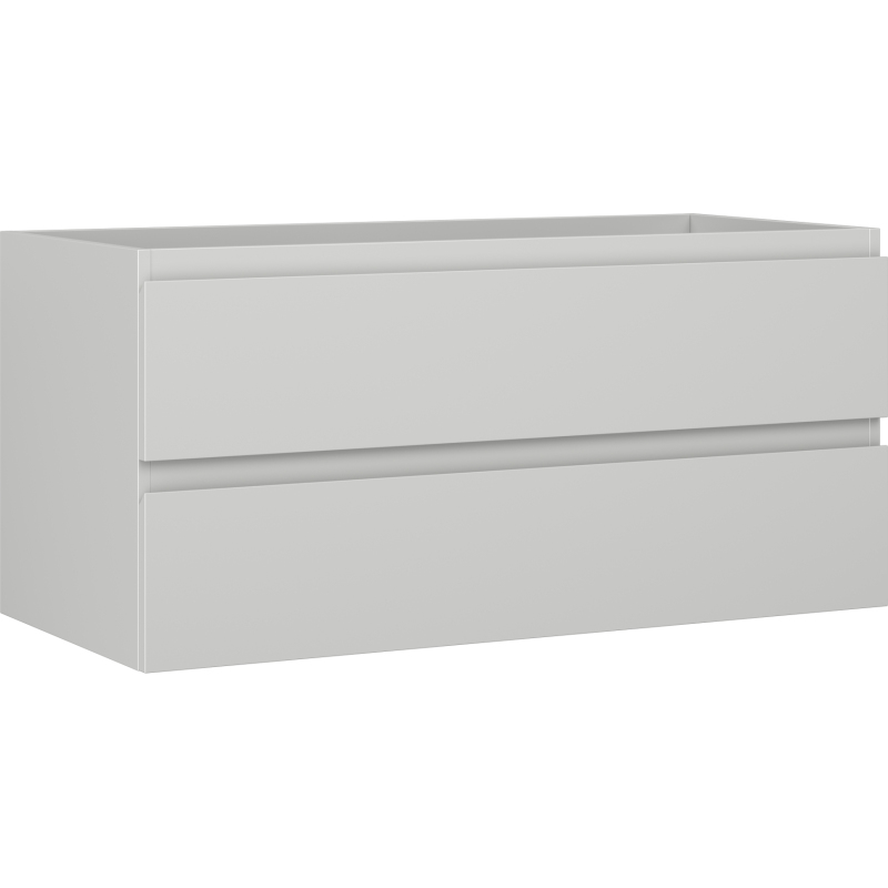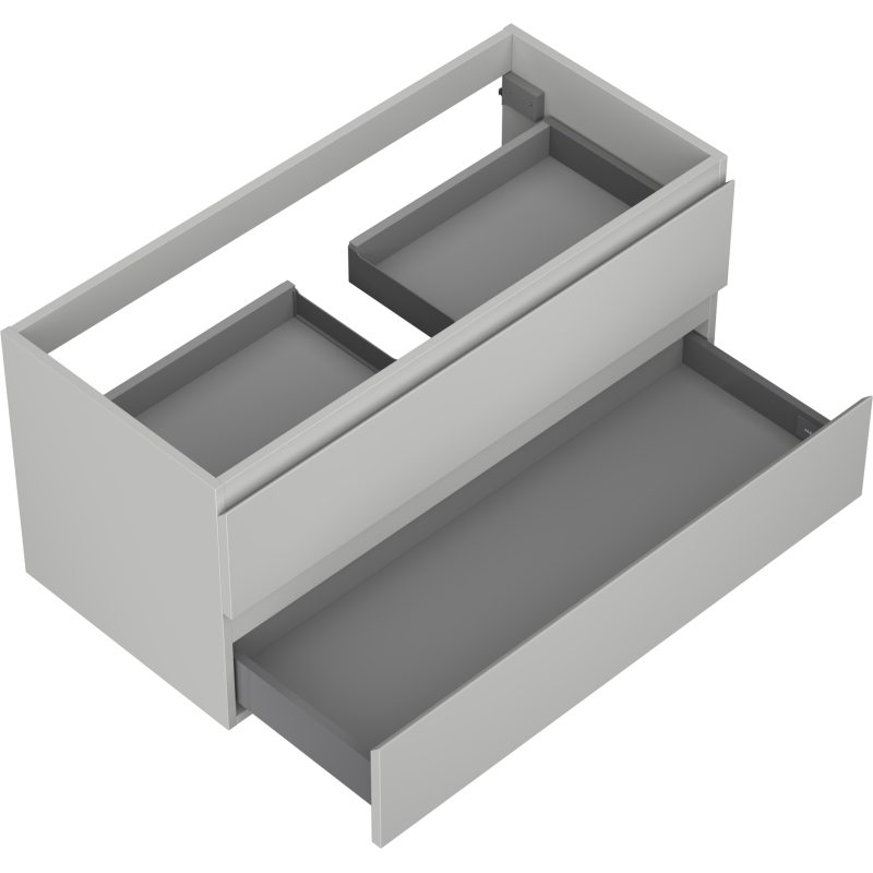 Specifikace produktu: Šířka: 100 cm Výška: 47 cm Hloubka: 46 cm Barva korpusu: Matně šedá Materiál korpusu: Lakovaná deska Barva čela: Matně šedá Materiál čela: Lakovaná MDF deska Struktura čela: Hladká Počet zásuvek: 2 Prostorná zásuvka s funkcí tlumeného dovírání Plný výsuv pro snadný přístup k obsahu zásuvky Povrch odolný vůči UV záření Lze doplnit pracovní deskou nebo umyvadlem Otis, Vela Smontovaný produkt