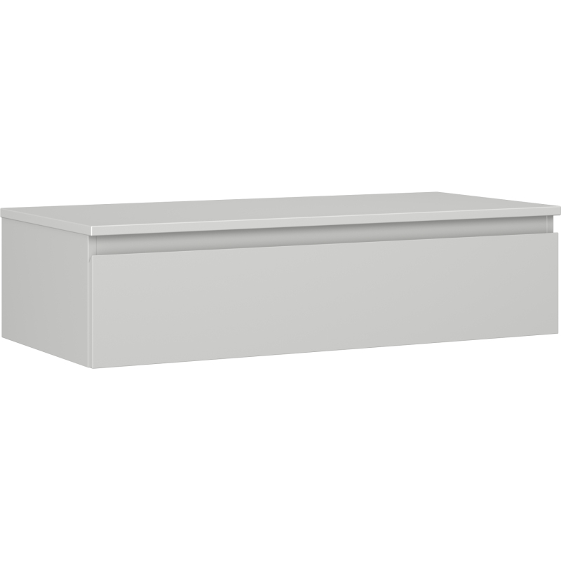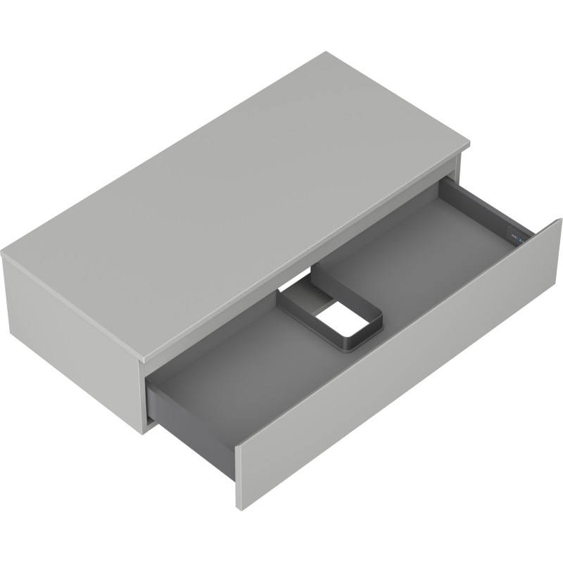 Specifikace produktu: Rozměry skříňky: Šířka: 100 cm Výška: 23,5 cm Hloubka: 46 cm Barva korpusu: Matně šedá Materiál korpusu: Lakovaná deska Barva čela: Matně šedá Materiál čela: Lakovaná MDF deska Struktura čela: Hladká Počet zásuvek: 1 Prostorná zásuvka s funkcí tlumeného dovírání Plný výsuv pro snadný přístup k obsahu zásuvky Povrch odolný vůči UV záření Rozměry pracovní desky: Šířka: 100,6 cm Hloubka: 46,5 cm Tloušťka: 1,8 cm Barva pracovní desky: Matně šedá Materiál pracovní desky: Lakovaná MDF deska Povrch odolný vůči UV záření Ideální jako podstavec pro umyvadla na desku Sestavený produkt