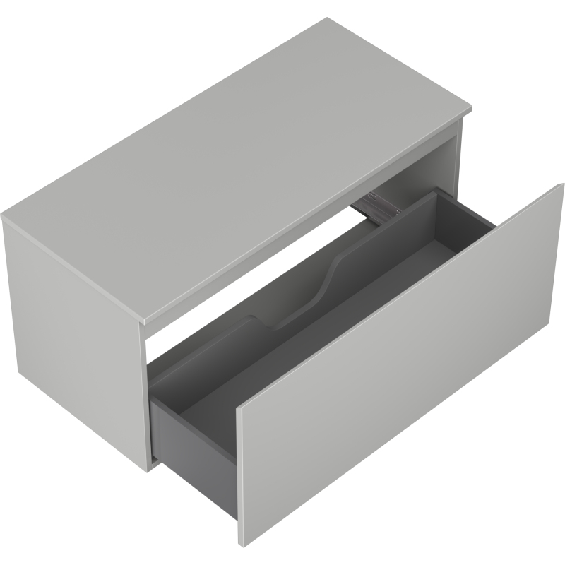 Specifikace produktu: Rozměry skříňky: Šířka: 100 cm Výška: 47 cm Hloubka: 46 cm Barva korpusu: Matně šedá Materiál korpusu: Lakovaná deska Barva čela: Matně šedá Materiál čela: Lakovaná MDF deska Struktura čela: Hladká Počet zásuvek: 1 Prostorná zásuvka s funkcí tlumeného dovírání Plný výsuv pro snadný přístup k obsahu zásuvky Povrch odolný vůči UV záření Rozměry pracovní desky: Šířka: 100,6 cm Hloubka: 46,5 cm Tloušťka: 1,8 cm Barva pracovní desky: Matně šedá Materiál pracovní desky: Lakovaná MDF deska Povrch odolný vůči UV záření Ideální jako podstavec pro umyvadla na desku Sestavený produkt