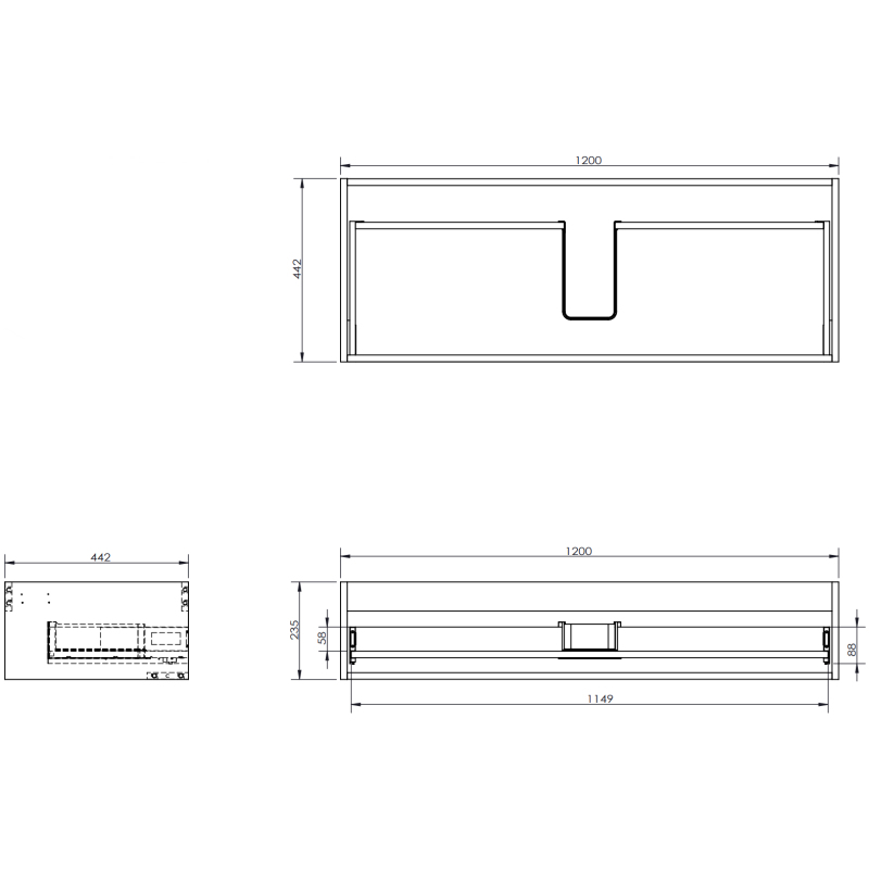 Specifikace produktu: Šířka: 120 cm Výška: 23,5 cm Hloubka: 46 cm Barva korpusu: Matně šedá Materiál korpusu: Lakovaná deska Barva čela: Matně šedá Materiál čela: Lakovaná MDF deska Struktura čela: Hladká Počet zásuvek: 1 Prostorná zásuvka s funkcí tlumeného dovírání Plný výsuv pro snadný přístup k obsahu zásuvky Povrch odolný vůči UV záření Lze doplnit pracovní deskou nebo umyvadlem Otis, Vela Smontovaný produkt