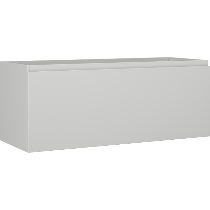 Specifikace produktu: Šířka: 120 cm Výška: 47 cm Hloubka: 46 cm Barva korpusu: Matně šedá Materiál korpusu: Lakovaná deska Barva čela: Matně šedá Materiál čela: Lakovaná MDF deska Struktura čela: Hladká Počet zásuvek: 1 Prostorná zásuvka s funkcí tlumeného dovírání Plný výsuv pro snadný přístup k obsahu zásuvky Povrch odolný vůči UV záření Lze doplnit pracovní deskou nebo umyvadlem Otis, Vela Smontovaný produkt