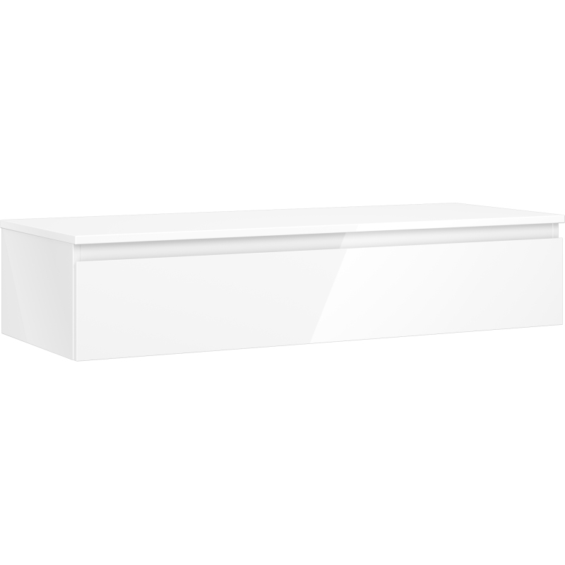 Specifikace produktu: Rozměry skříňky: Šířka: 120 cm Výška: 23,5 cm Hloubka: 46 cm Barva korpusu: Lesklá bílá Materiál korpusu: Lakovaná deska Barva čela: Lesklá bílá Materiál čela: Lakovaná MDF deska Struktura čela: Hladká Počet zásuvek: 1 Prostorná zásuvka s funkcí tlumeného dovírání Plný výsuv pro snadný přístup k obsahu zásuvky Povrch odolný vůči UV záření Rozměry pracovní desky: Šířka: 120,6 cm Hloubka: 46,5 cm Tloušťka: 1,8 cm Barva pracovní desky: Lesklá bílá Materiál pracovní desky: Lakovaná MDF deska Povrch odolný vůči UV záření Ideální jako podstavec pro umyvadla na desku Sestavený produkt