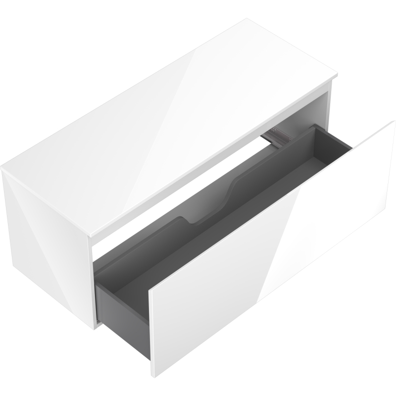 Specifikace produktu: Rozměry skříňky: Šířka: 120 cm Výška: 47 cm Hloubka: 46 cm Barva korpusu: Lesklá bílá Materiál korpusu: Lakovaná deska Barva čela: Lesklá bílá Materiál čela: Lakovaná MDF deska Struktura čela: Hladká Počet zásuvek: 1 Prostorná zásuvka s funkcí tlumeného dovírání Plný výsuv pro snadný přístup k obsahu zásuvky Povrch odolný vůči UV záření Rozměry pracovní desky: Šířka: 120,6 cm Hloubka: 46,5 cm Tloušťka: 1,8 cm Barva pracovní desky: Lesklá bílá Materiál pracovní desky: Lakovaná MDF deska Povrch odolný vůči UV záření Ideální jako podstavec pro umyvadla na desku Sestavený produkt